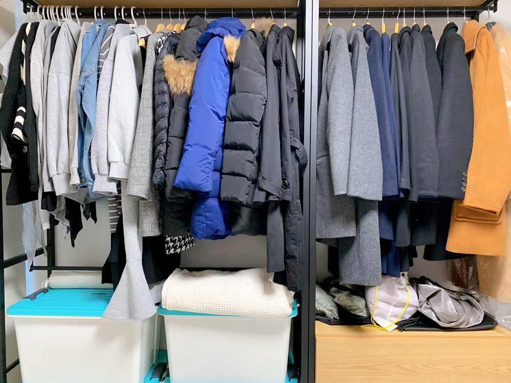 반대편엔 겨울옷들. 짐 정리하다가 책만 많은 줄 알았더니 옷도 많아서 놀랐는데 겨울 외투를 제외하곤 다 시장 좌판에서 이천 원, 삼천 원에 사들인 옷이 대부분이다. 10개를 사도 일반 옷 하나 가격이라 부담 없이 사다 보니 옷이 많아졌다. 정리하면서 몇 봉지를 버렸는데도 저 정도. 최근 1년 정도는 시장을 거의 안 갔는데 그 이전에 사들이 옷이 많아서 당분간 새 옷을 사지 않아도 될 정도다. 겨울 외투는 커버를 사서 씌워야 하는데 귀찮아서 미루고 있다.