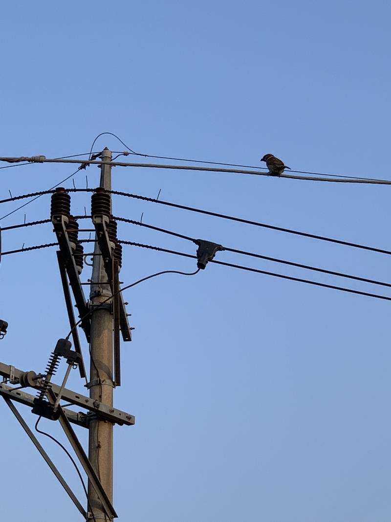 침실 창밖 전깃줄에 앉은 참새 도촬