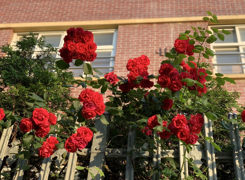 집 앞 중학교 담장에 장미가 만개했다. 왼쪽 위에 옹기종기 모여서 핀 녀석들 넘 귀엽다.
