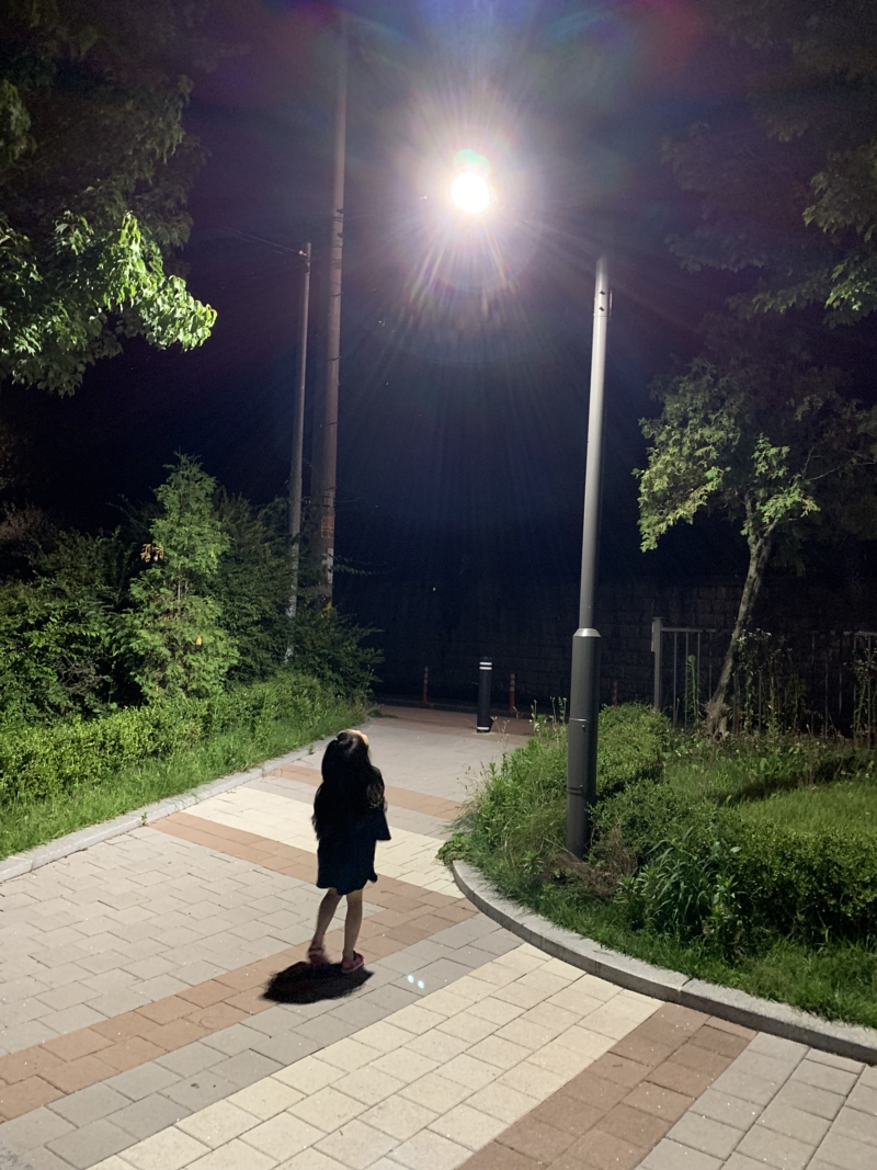 어제 공원에서 운동하다 찍은 2호. 아빠한테 혼나서 시무룩 하기에 과자 사주고 놀아줬다.