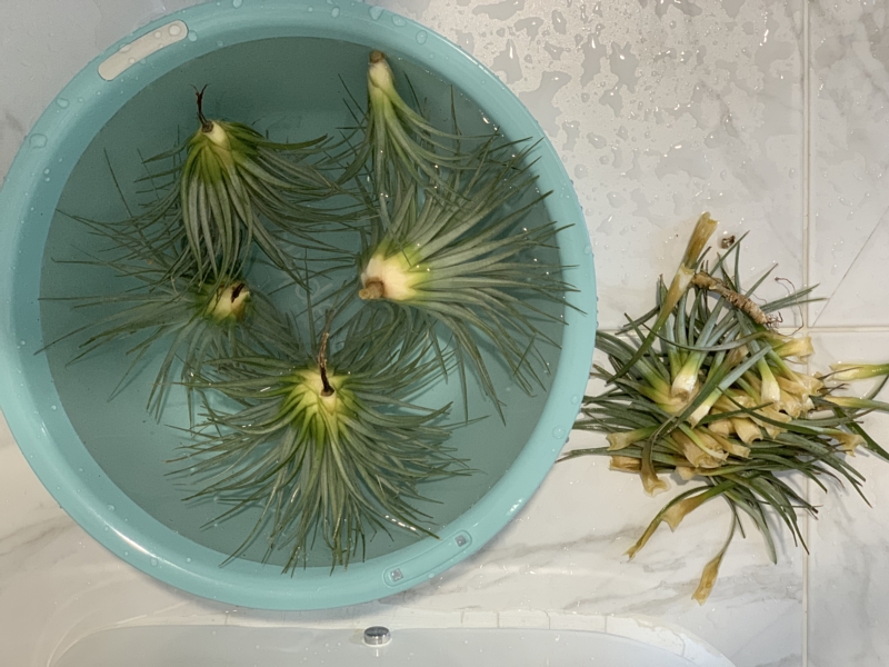 코튼캔디와 이오난사도 물 먹는 중. 흙 없이 자라는 식물이지만 물과 통풍은 필수다.