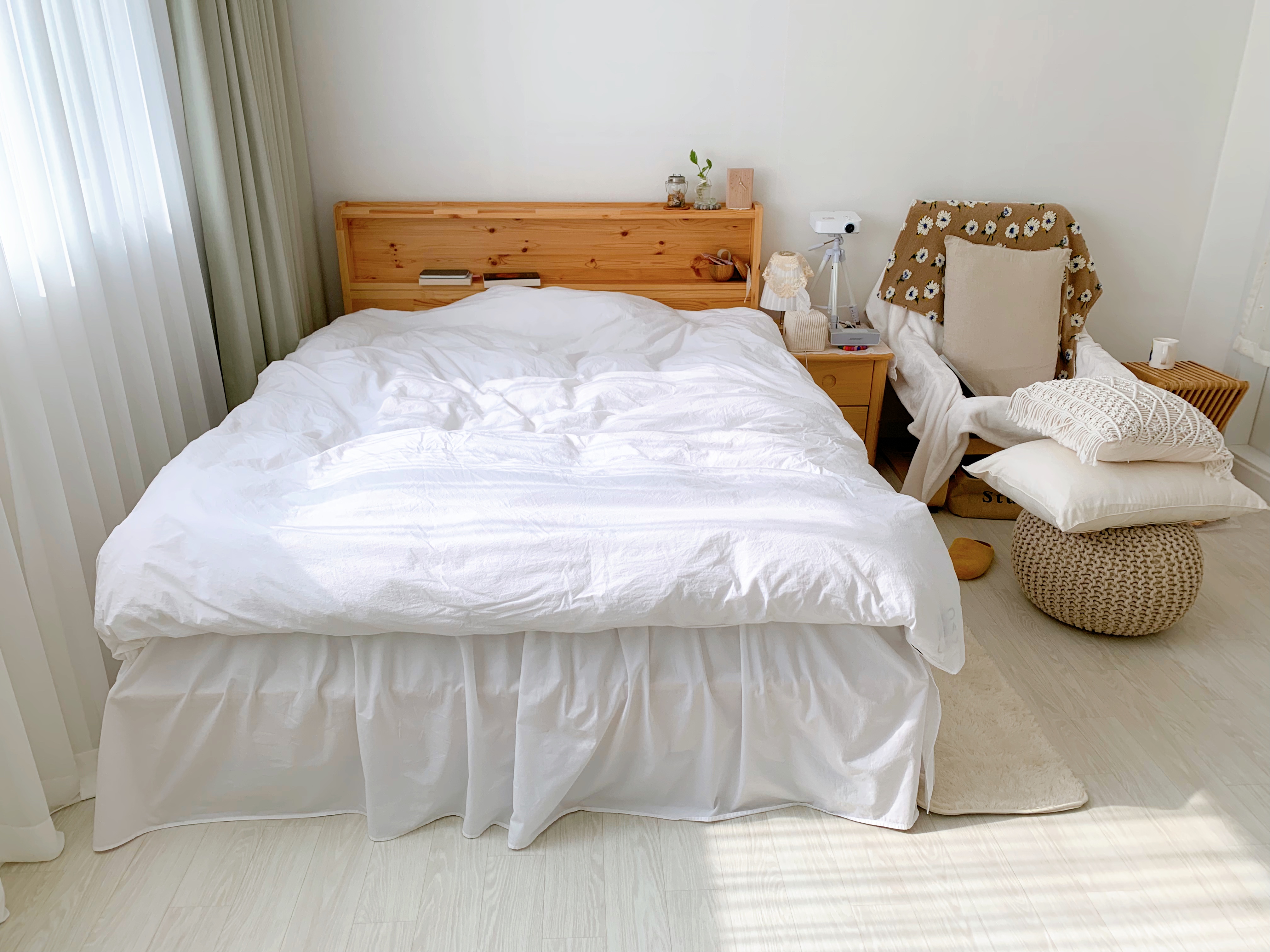 달라진 게 없어 보이지만 이불 커버를 바꿨다. 2주에 한 번씩 세탁을 해서 그런가 커버에 구멍이 나서 점점 커지는 바람에 새로 샀다. 화이트도 색이 다 다른데 이 커버는 웜화이트. 창백한 쿨화이트가 더 좋긴 한데 크게 거슬리진 않는다. 바스락 거리는 재질에 먼지도 잘 안 붙고 연결 고리가 똑딱이로 되어 있어 편하긴 하다.