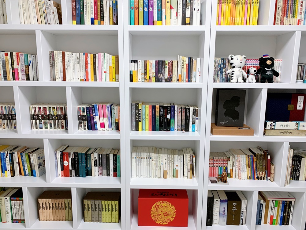 이중삼중으로 겹쳐서 보관하던 책들을 이렇게 꽂아두니 보기 좋다. 책장은 보기엔 튼튼해 보이지만 뒤는 얇은 합판이고 안은 비어 있어서 그리 튼튼한 제품은 아니다. 그래도 책을 많이 꽂지 않을 거니 오래 버텨줬으면 하는 바람이다. 전집들은 대부분 도서정가제 시행 전에 대폭 할인할 때 사들인 건데 책장에 넣어두니 뭔가 있어 보인다. 물론 읽지는 않았습니다. 상자에 처박혀 있던 CD, DVD, Blue-Ray도 이제야 빛을 본다. 인생 드라마인 <비밀의 숲>과 <다모>는 특별히 잘 보이게 진열했다. 비숲 시즌 2가 8월에 방영한다던데 아직 한 달 넘게 남았지만 비숲 기다리는 낙으로 열심히 살아야겠다.