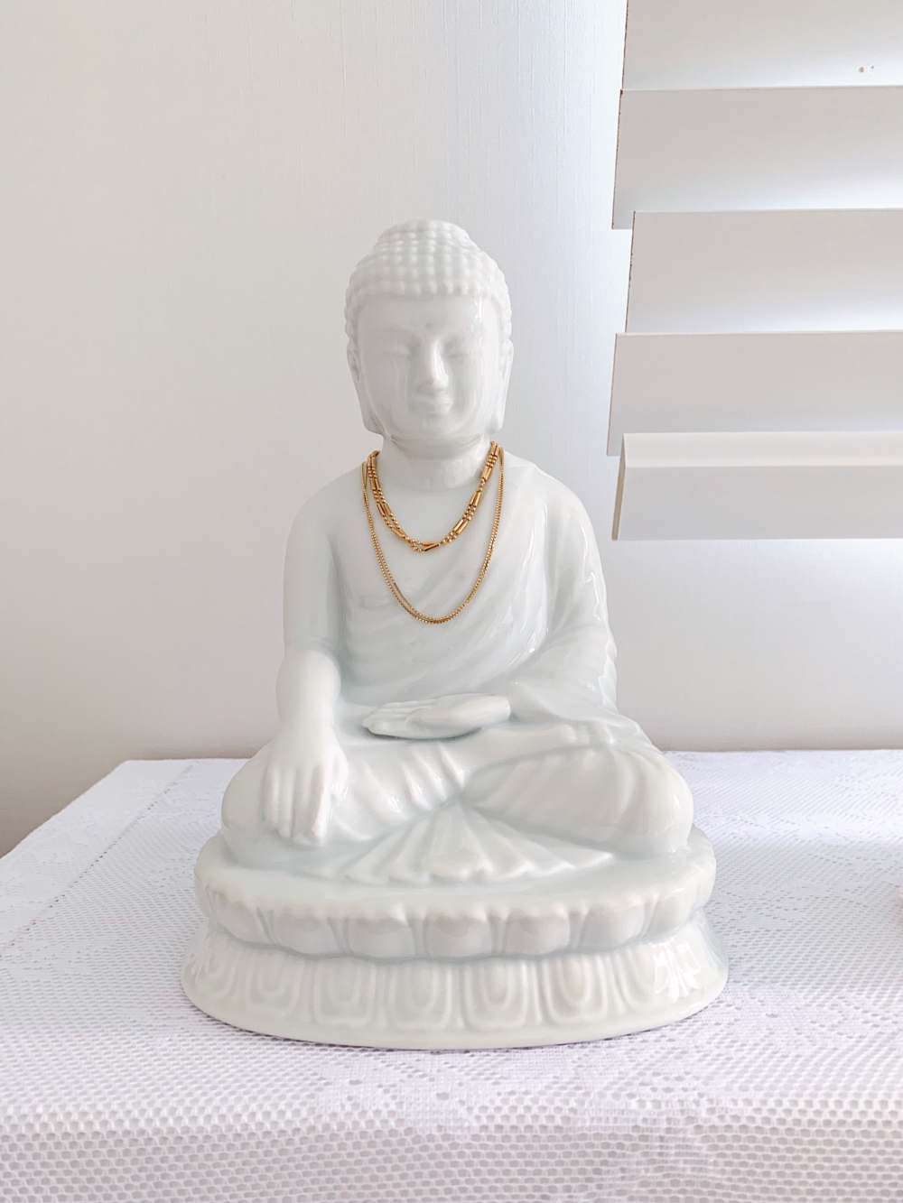 국중박 뮤지엄샵에서 인기 많은 불상은 반가사유상인데 매번 품절이거나 원하는 색이 없었다. 세 분 모셔서 작당모의를 만들고 싶었거늘. 그러던 중 백자 불상이 눈에 들어와서 샀고, 받아보니 생각보다 존재감 뿜뿜이다. 반가사유상이 섬세해서 세련된 느낌이라면 백자 불상은 투박하지만 묵직한 존재감이 느껴진다. 서로 다른 매력이 있다.