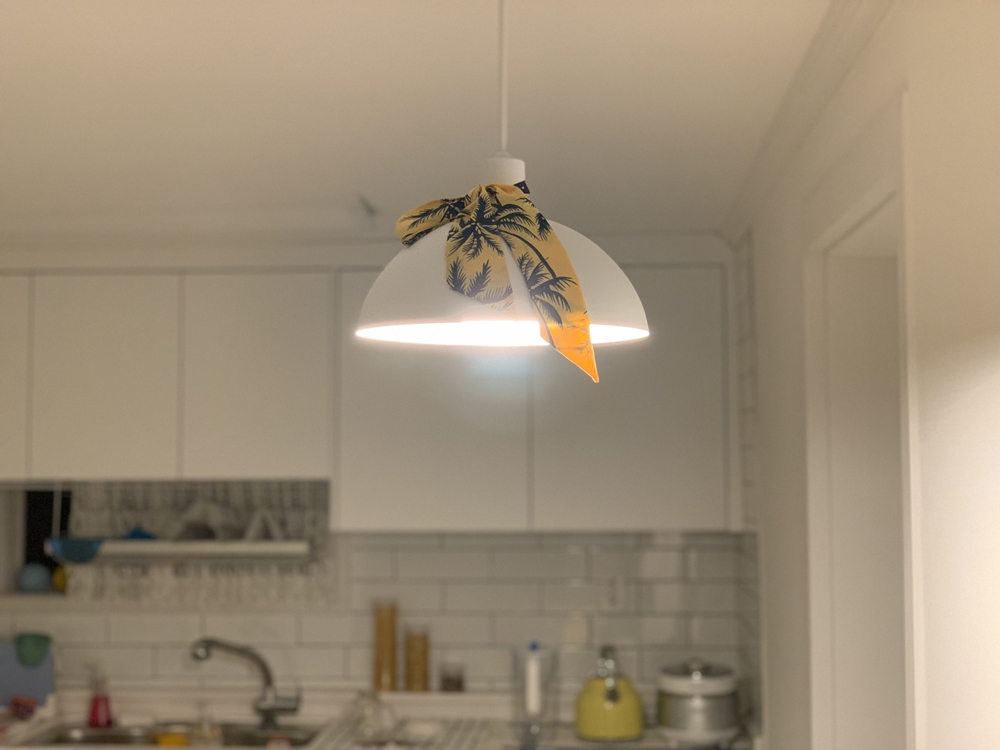주방 식탁 등에 예전에 사 둔 트윌리를 묶어 보았다.