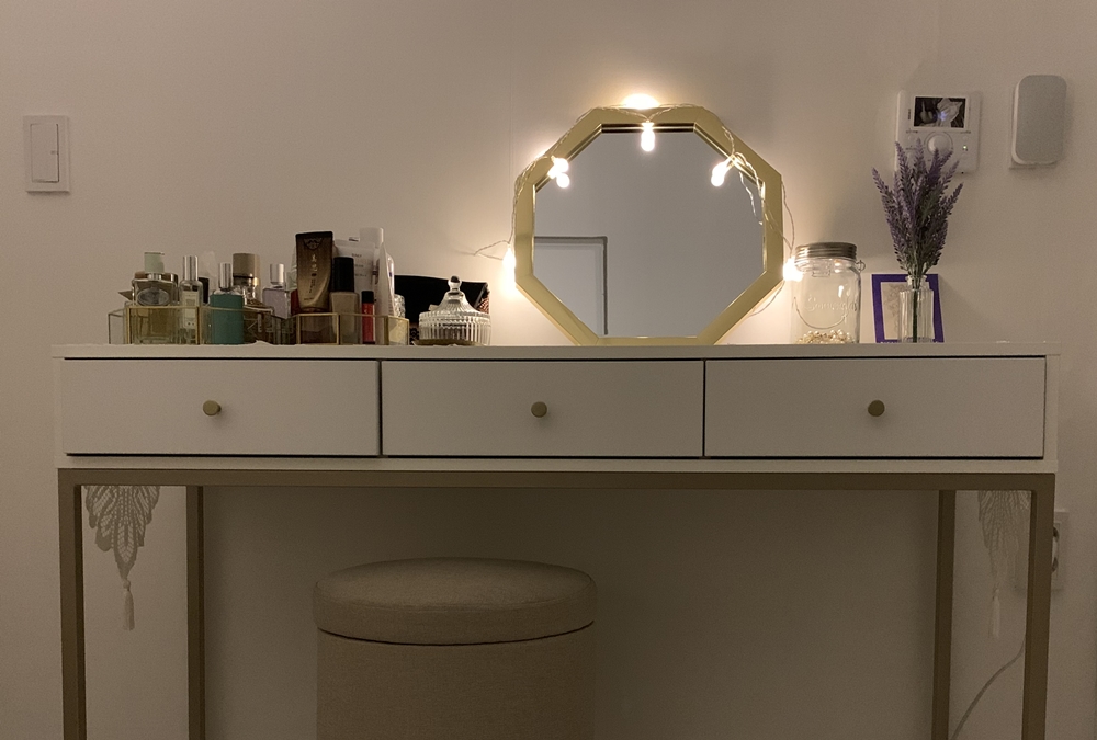 동인비 화장품 샘플에 당첨되어 받은 전구를 화장대 거울에 걸쳐♪ 걸쳐♬